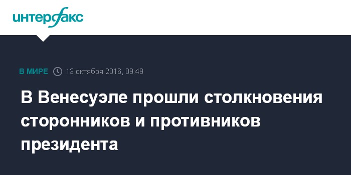 Москва. 13 октября. INTERFAX.RU - Несколько человек пострадали в Венесуэле в результате столкновений между сторонниками президента страны Николаса Мадуро и оппозицией, выступающей за проведение референдума о досрочном прекращении его полномочий, сообщают в четверг западные СМИ.