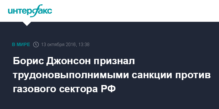 Москва. 13 октября. INTERFAX.RU - Глава МИД Британии Борис Джонсон считает логичным, но трудновыполнимым вариант с введением санкций в отношении российского газового сектора.
