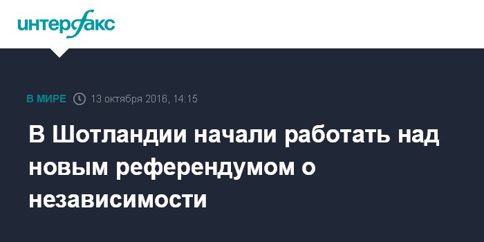 Москва. 13 октября. INTERFAX.RU - Первый министр Шотландии и лидер Шотландской национальной партии (SNP) Никола Стерджен заявила, что на следующей неделе будет обнародован законопроект для проведения нового референдума о независимости от Великобритании.