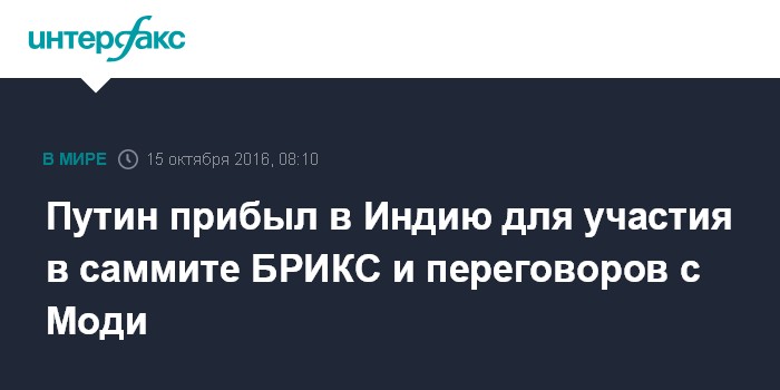 Владимир Путин прибыл в Индию для участия в саммите #БРИКС pic.twitter.com/Aq6MfFCR7N