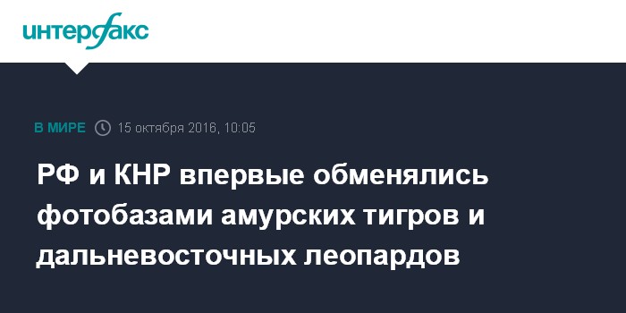 РФ и КНР впервые обменялись фотобазами амурских тигров и дальневосточных леопардов