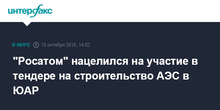 "Росатом" нацелился на участие в тендере на строительство АЭС в ЮАР