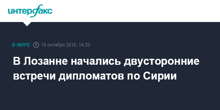 Москва. 15 октября. INTERFAX.RU - Все делегации, участвующие во многосторонней встрече по Сирии в Лозанне, прибыли к месту переговоров, проходит ряд двусторонних встреч, передает корреспондент "Интерфакса".