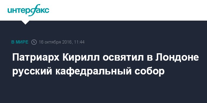 Москва. 16 октября. INTERFAX.RU - Патриарх Московский и всея Руси Кирилл в воскресенье освятил русский Успенский кафедральный собор в Лондоне, а также колокола и фрески на наружной стене храма.