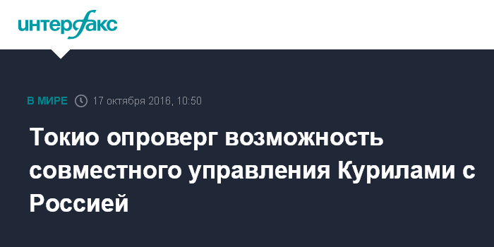 Ранее в японском издании "Никкэй" появилась сообщение о том, что японские власти рассматривают планы управления вместе с РФ четырьмя спорными островами в рамках урегулирования территориальных разногласий между Токио и Москвой.