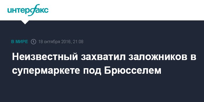 Москва. 18 октября. INTERFAX.RU - Бельгийские СМИ сообщают о захвате заложников в супермаркете недалеко от Брюсселя.