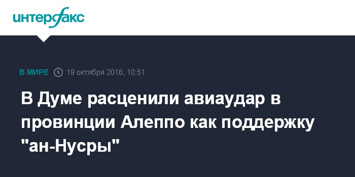 В Думе расценили авиаудар в провинции Алеппо как поддержку "ан-Нусры"