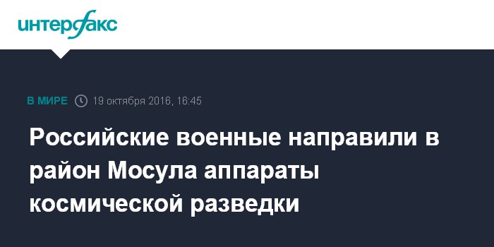 Москва. 19 октября. INTERFAX.RU - Российские военные направили в район иракского Мосула аппараты космической разведки, там действуют более десяти подобных средств, сообщил начальник Генштаба ВС РФ Валерий Герасимов.