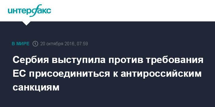 Сербия выступила против требования ЕС присоединиться к антироссийским санкциям