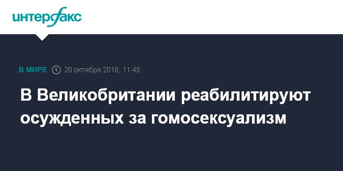 Москва. 20 октября. INTERFAX.RU - Власти Соединенного королевства решили реабилитировать всех, кто был осужден за свою сексуальную ориентацию. Об этом в четверг заявил британский министр юстиции Сэм Гимах, сообщает "Би-Би-Си".