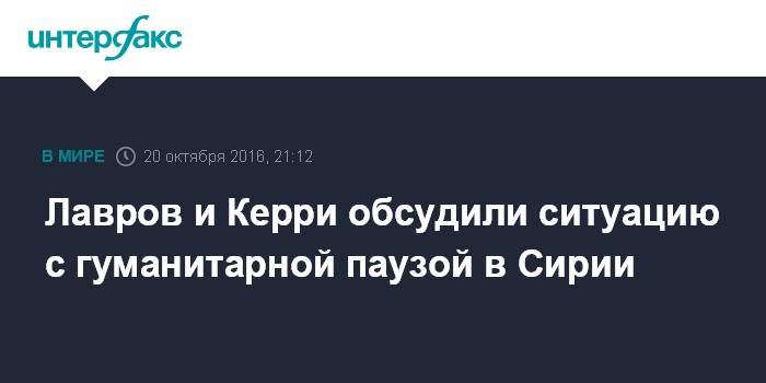 "Продолжая двусторонний диалог по сирийской проблематике, главы внешнеполитических ведомств в развитие лозаннских договоренностей от 15 октября обсудили пути нормализации обстановки в восточной части Алеппо, где правительственные силы Сирии и ВКС России объявили гуманитарную паузу в боевых действиях и готовы ее продлевать, если "Джабхат ан-Нусра" (запрещена в России - ИФ) и примкнувшие к ней незаконные вооруженные формирования не будут нарушать режим тишины", - говорится в сообщении МИД РФ.