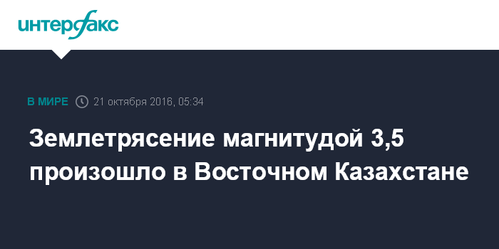 Москва. 21 октября. INTERFAX.RU - В Восточно-Казахстанской области в ночь на пятницу произошло землетрясение магнитудой 3,5, сообщил Центр сбора и обработки сейсмической информации института геофизических исследований Казахстана.