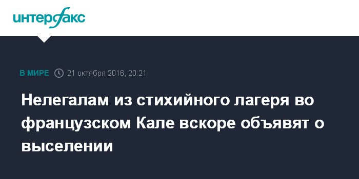 Москва. 21 октября. INTERFAX.RU - Власти Франции выселят нелегалов из стихийного лагеря в Кале, прежде чем его разобрать, сообщают в пятницу парижские СМИ.
