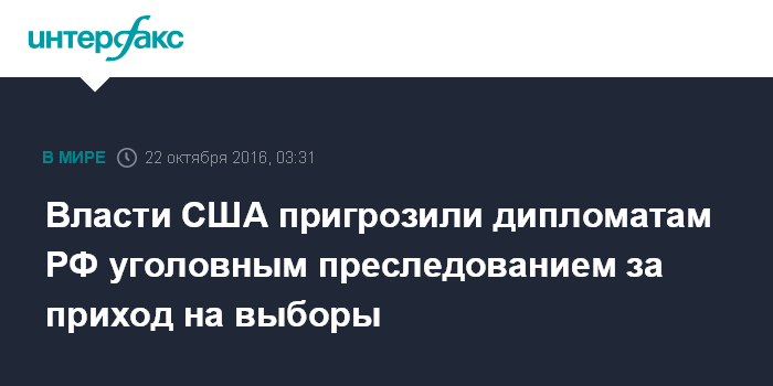 Власти США пригрозили дипломатам РФ уголовным преследованием за приход на выборы