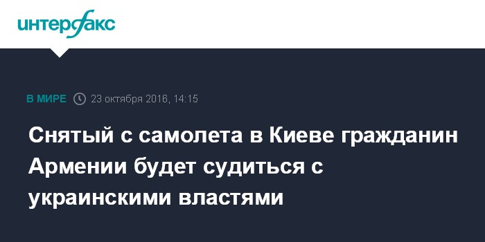 Снятый с самолета в Киеве гражданин Армении будет судиться с украинскими властями
