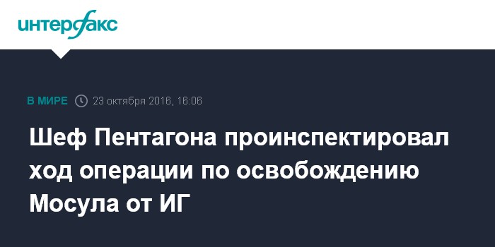 Москва. 23 октября. INTERFAX.RU - Министр обороны США Эштон Картер в воскресенье посетил иракский город Ирбиль, где лично оценил ход наступления на город Мосул, сообщило агентство Associated Press.