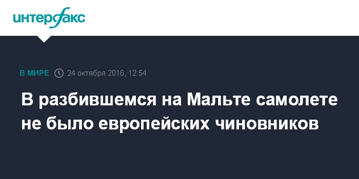 Ранее в понедельник некоторые СМИ сообщили, что на Мальте разбился самолет, жертвами крушения стали пять человек, в том числе чиновники ЕС.