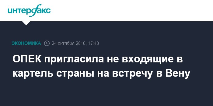 Москва. 24 октября. INTERFAX.RU - ОПЕК пригласила на заседание 30 ноября в Вене нефтедобывающие страны, не входящие в картель, сообщил министр энергетики РФ Александр Новак на пресс-конференции.