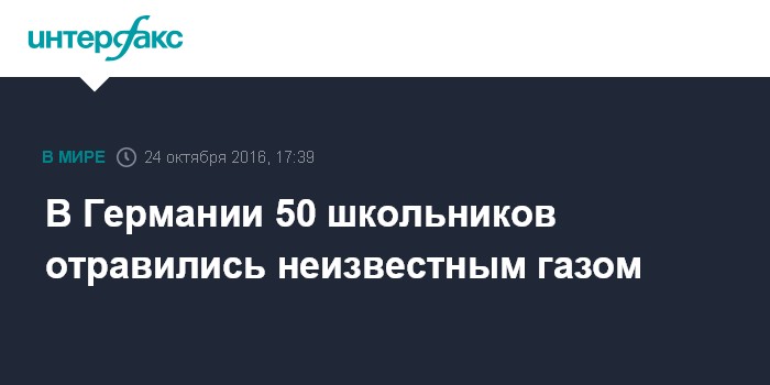 Москва. 24 октября. INTERFAX.RU - Не менее 50 школьников отравились в средней школе немецкого города Хайльбронн (земля Баден-Вюртемберг) из-за утечки неизвестного газа, сообщают в понедельник немецкие СМИ.