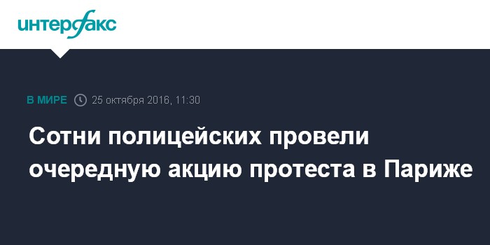 Москва. 25 октября. INTERFAX.RU - Несколько сотен сотрудников французской полиции в ночь на вторник провели новую акцию протеста в Париже, сообщает радиостанция France Info.