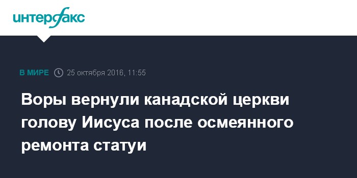 Воры вернули канадской церкви голову Иисуса после осмеянного ремонта статуи