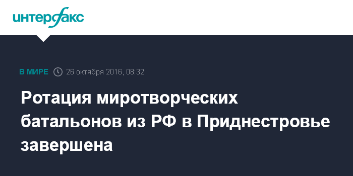 Москва. 26 октября. INTERFAX.RU - Завершилась ежегодная ротация мотострелковых батальонов Оперативной группы российских войск в зоне безопасности в Приднестровском регионе Молдавии (ОГРВ ПРРМ), сообщил начальник пресс-службы Западного военного округа полковник Игорь Мугинов.