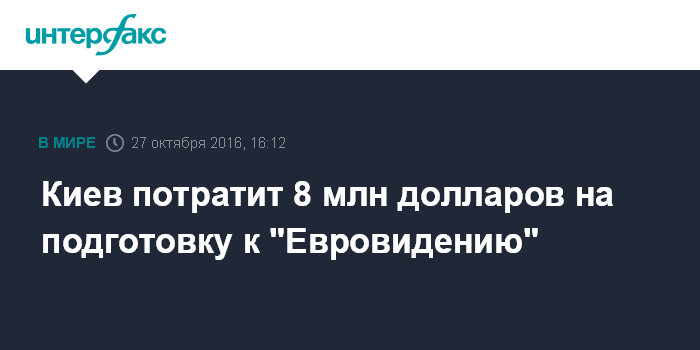 Москва. 27 октября. INTERFAX.RU - Киевский городской совет выделит 200 млн гривен (около 8 млн долларов) на подготовку к проведению конкурса "Евровидение" в 2017 году.