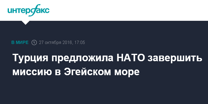 Москва. 27 октября. INTERFAX.RU - Турция обратилась к НАТО с предложением завершить миссию по сдерживанию миграционного потока в Эгейском море. Об этом в четверг рассказал министр обороны страны Фикри Ышик.