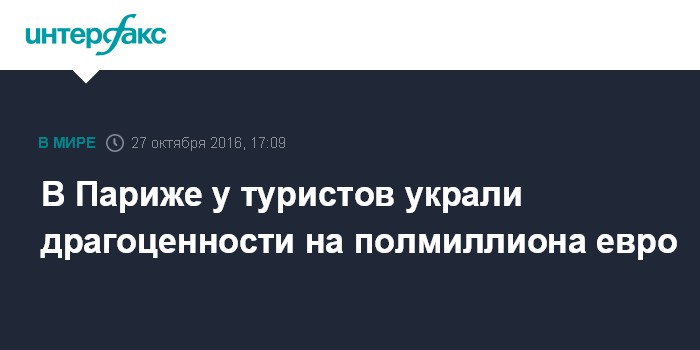 Москва. 27 октября. INTERFAX.RU - В Париже у пары из Бахрейна украли драгоценности, стоимость которых оценивается в примерно 500 тыс. евро, сообщают в четверг французские СМИ.