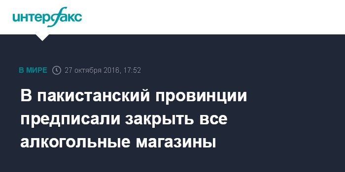 Москва. 27 октября. INTERFAX.RU - Суд пакистанской провинции Синд в четверг обнародовал предписание о закрытии всех магазинов, торгующих алкогольной продукцией, сообщает израильское издание The Jerusalem Post .