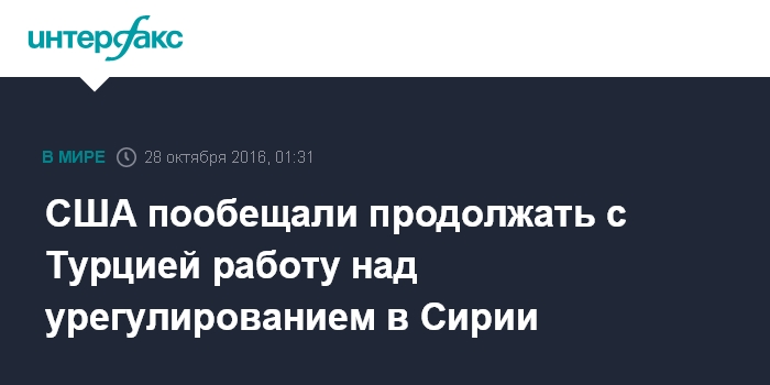 США пообещали продолжать с Турцией работу над урегулированием в Сирии