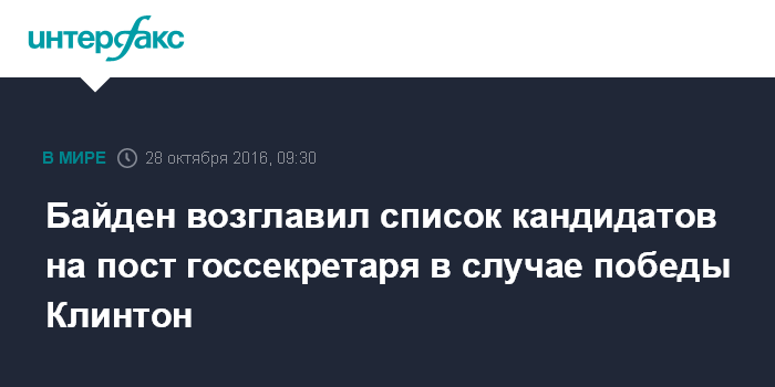 "Джо Байден возглавляет шорт-лист претендентов Клинтон на пост госсекретаря", - пишет издание.