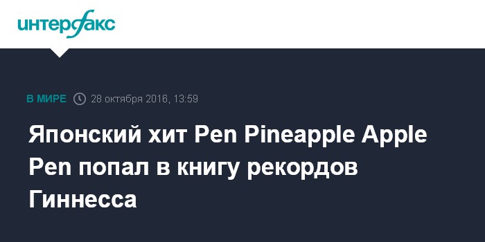Японский хит Pen Pineapple Apple Pen попал в книгу рекордов Гиннесса