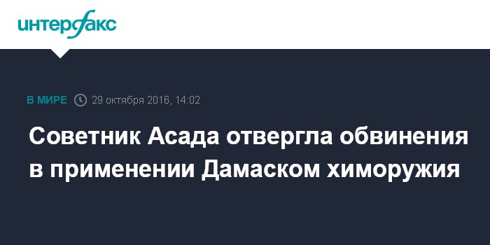 Советник Асада отвергла обвинения в применении Дамаском химоружия