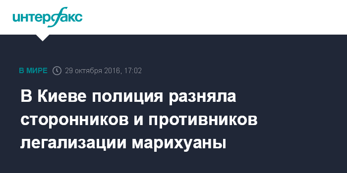 Москва. 29 октября. INTERFAX.RU - Правоохранители не допустили возникновения массовой драки на Михайловской площади в центре Киева между участниками двух акций - сторонников и противников легализации легких наркотиков.