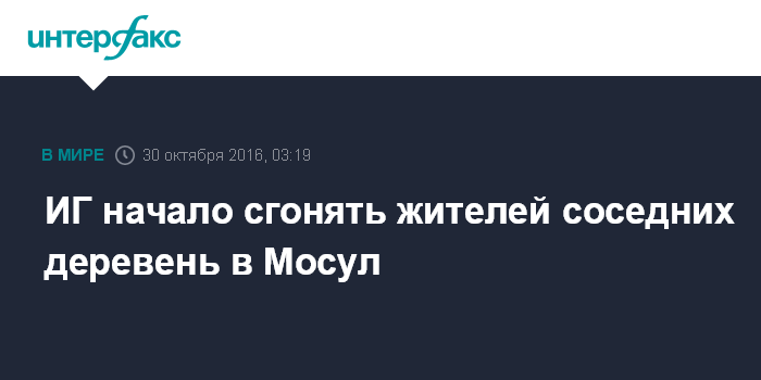 Москва. 30 октября. INTERFAX.RU - Тысячи мирных жителей, в том числе женщины, дети и старики, были приведены в центр Мосула после того, как боевики ИГ (запрещенная в РФ террористическая организация) отступили из близлежащих городов, сообщает CNN.