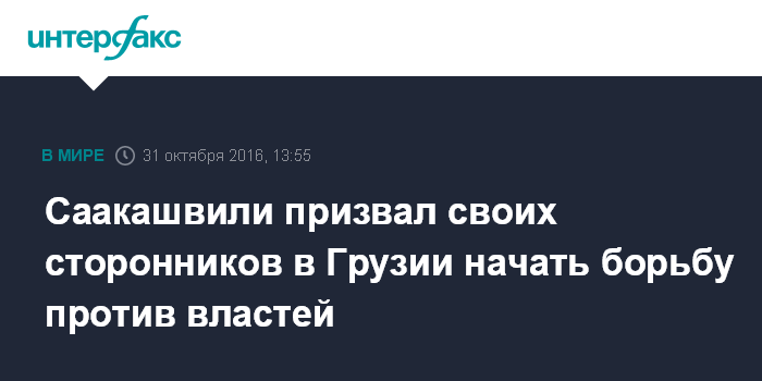 Москва. 31 октября. INTERFAX.RU - Экс-президент Грузии, глава администрации Одесской области Украины Михаил Саакашвили утверждает, что второй тур парламентских выборов на его родине был сфальсифицирован нынешними властями и правящей партией "Грузинская мечта".