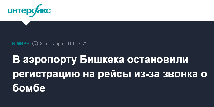 Москва. 31 октября. INTERFAX.RU - Международный аэропорт "Манас" в столице Киргизии Бишкеке в понедельник приостановил регистрацию на авиарейсы после сообщения о заложенной бомбе.
