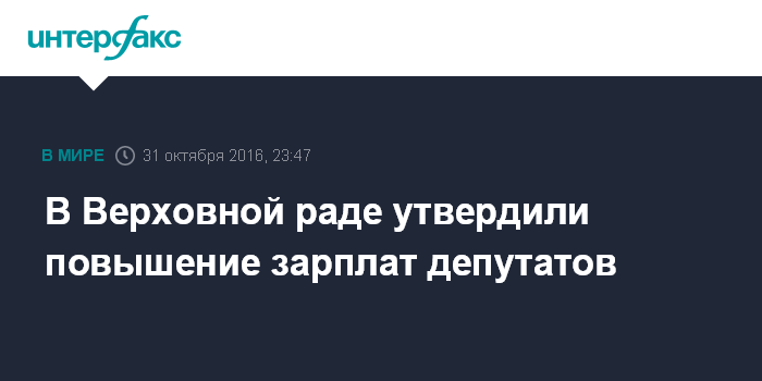 Москва. 31 октября. INTERFAX.RU - Председатель Верховной рады Украины Андрей Парубий подписал постановление "О выводах и предложениях к проекту Закона Украины о Государственном бюджете Украины на 2017 год", включающее и дополнение о повышении зарплат народным депутатам.