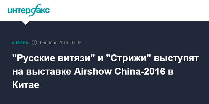 "Русские витязи" и "Стрижи" выступят на выставке Airshow China-2016 в Китае