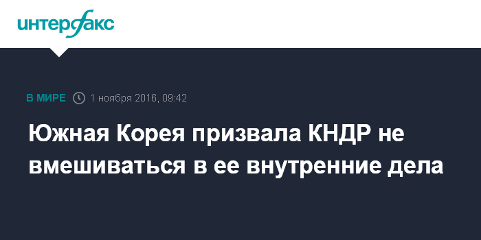 Москва. 1 ноября. INTERFAX.RU - Южнокорейское министерство по делам объединения во вторник обратилось с призывом к КНДР впредь воздерживаться от вмешательства во внутреннюю политику Южной Кореи, сообщают южнокорейские СМИ со ссылкой на представителя министерства.