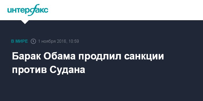 Москва. 1 ноября. INTERFAX.RU - Президент США Барак Обама продлил санкции в отношении Судана еще на один год. Это следует из уведомления, направленного во вторник Конгрессу США.