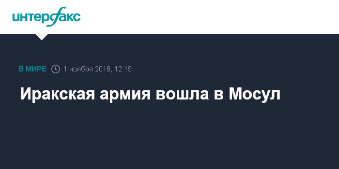 Москва. 1 ноября. INTERFAX.RU - Подразделения иракских сил во вторник вошли в Мосул, сообщает с места событий корреспондент британской телерадиокорпорации "Би-би-си".