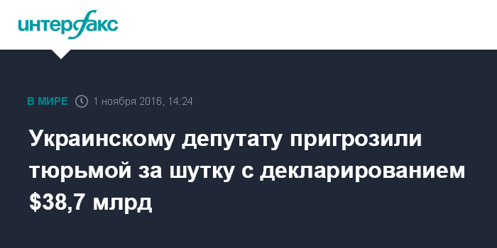 Украинскому депутату пригрозили тюрьмой за шутку с декларированием $38,7 млрд