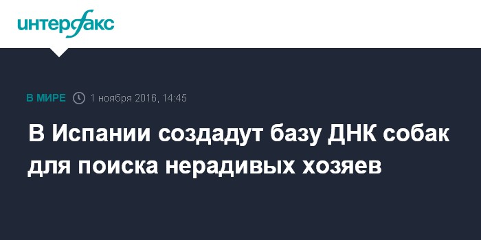 Москва. 1 ноября. INTERFAX.RU - Чиновники муниципалитета Мислата в Валенсии собираются создать базу ДНК местных собак. Ее будут использовать для того, чтобы привлекать к ответственности хозяев, которые не убирают за своими питомцами. Об этом в понедельник говорится на сайте муниципалитета.