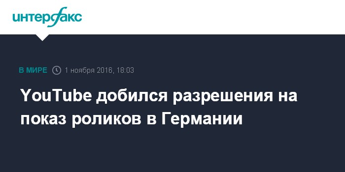 Москва. 1 ноября. INTERFAX.RU - После семилетней тяжбы сервис YouTube, принадлежащий компании Google, сумел заключить соглашение с немецким Обществом по управлению правами на публичное исполнение и механическое воспроизведение музыки (Gema). Фактически это означает возобновление полноценной работы видеохостинга в стране, пишет во вторник Bloomberg.