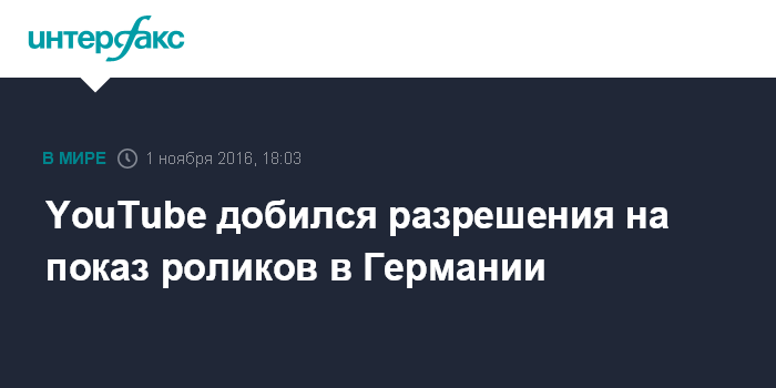 YouTube добился разрешения на показ роликов в Германии