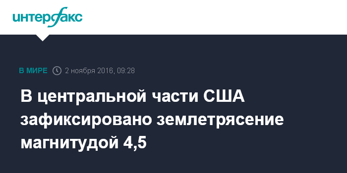 В центральной части США зафиксировано землетрясение магнитудой 4,5