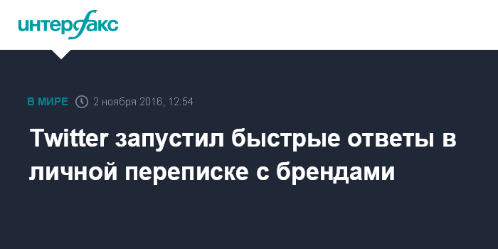Москва. 2 ноября. INTERFAX.RU - Микроблоговый сервис Twitter запустил две новые функции - быстрые ответы и приветствия в личных сообщениях, которые дадут брендам возможность эффективнее общаться со своими подписчиками, говорится в сообщении пресс-службы компании.
