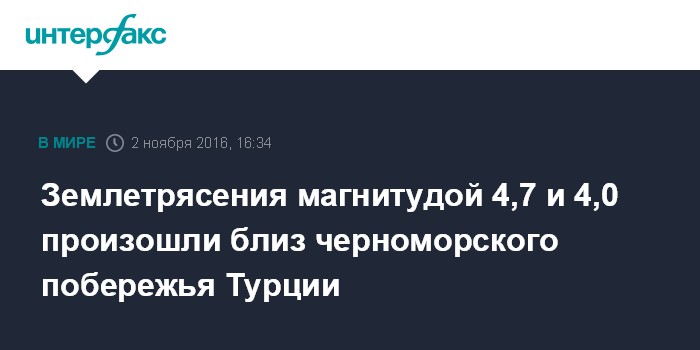 Землетрясения магнитудой 4,7 и 4,0 произошли близ черноморского побережья Турции